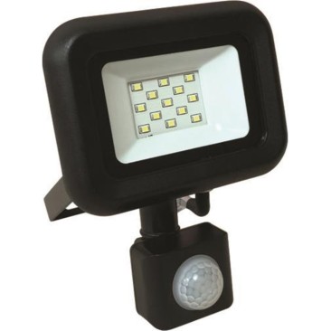 Στεγανός προβολέας LED SMD Eurolamp Plus 10W με βάση 360 μοιρών, σε μαύρο χρώμα, με ψυχρό φωτισμό και περιστρεφόμενο ανιχνευτή κίνησης. Διαθέτει δυνατότητα ρύθμισης ευαισθησίας στο φως της ημέρας.