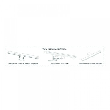 Πρόκειται για ένα επιτοίχιο φωτιστικό κατασκευασμένο από πλαστικό σε μαύρη απόχρωση. Η λευκή του επιφάνεια καλύπτει τον led φωτισμό απόχρωσης φυσικού χρώματος. Μπορεί να τοποθετηθεί με τρεις τρόπους.