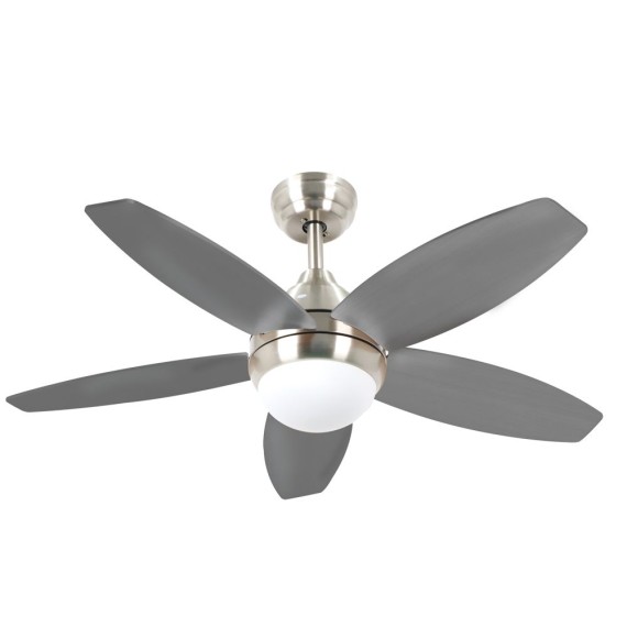Ανεμιστήρας οροφής 110 εκατοστών της εταιρίας TELCO με δυνατότητα αντίστροφης περιστροφής. Διαθέτει ντουί για λάμπα τύπου Ε27, DC μοτέρ, 5 φτερά και τηλεχειριστήριο σε ασημί χρώμα.