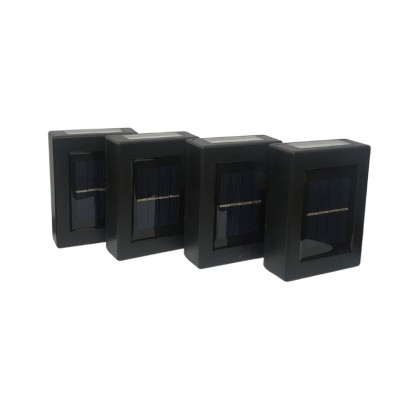 Σετ με 4 επιτοίχια ηλιακά φωτιστικά LED σε μαύρο χρώμα, με θερμό φως, φωτισμό διπλής κατεύθυνσης (πάνω-κάτω), διακόπτη on/off και ενσωματωμένο panel τροφοδοσίας.