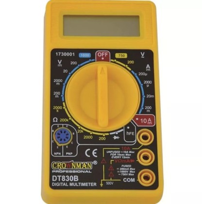 Ψηφιακό πολύμετρο της εταιρίας Crownman με οθόνη LCD για την ένδειξη των μετρήσεων καθώς και προειδοποιητική ένδειξη χαμηλής μπαταρίας. Η συσκευασία περιλαμβάνει καλώδια μέτρησης, βιβλίο οδηγιών και μπαταρία 9V.