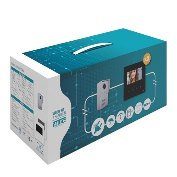 Σύστημα θυροτηλεόρασης 2 καλωδίων της εταιρίας CTC με έγχρωμη οθόνη 7 ιντσών σε μαύρο χρώμα, ευρυγώνια κάμερα και αδιάβροχη μπουτονιέρα για επίτοιχη τοποθέτηση. Υποστηρίζει έως 4 εσωτερικές συσκευές ενδοεπικοινωνίας στην ίδια κλήση, ενώ επιπλέον παρέχει την δυνατότητα επέκτασης έως 4 μπουτονιέρες.